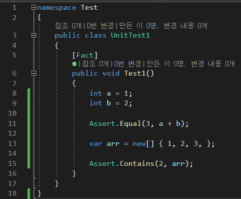 테스트 할 메소드에 [Fact] 애트리뷰트를 지정하기만 하면 자동으로 테스트 메소드가 됩니다.