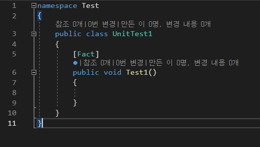 만들어진 프로젝트엔 UnitTest1.cs 라는 파일이 있습니다.